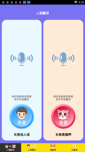 人猫人狗交流器会真正对你的声音进行音频分析(真的如此)并根据你的输入复述出变声的宠物叫声。