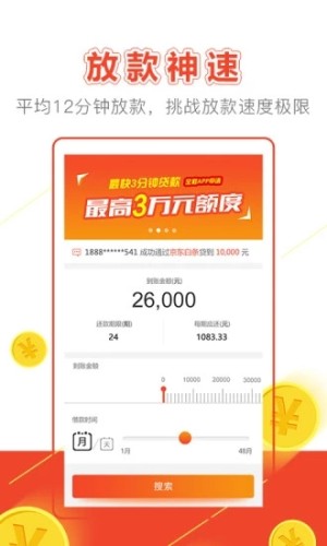 平均12分钟放款,挑战放款速度极限。可以根据产品列表的标签迅速定位快速下款的渠道,江湖救急,急你所急。