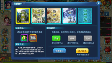 《绝世天骄》中,玩家们可以单人或组队,挑战影月崖、缥缈峰、灵鹫宫、雪域等多个副本。每个副本都拥有简单、普通、困难三种难度,玩家们可以根据自己的战力或团队实力挑选一个难度并挑战。挑战副本,玩家们可以获得洗宠卷轴、坐骑灵丹、南极精魄、阵法残卷等多种道具奖励。