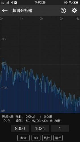打开频谱分析器,靠近声源,你就可以从上面看到音源的声音变化情况。可用于分析歌手唱歌时的声线特征。