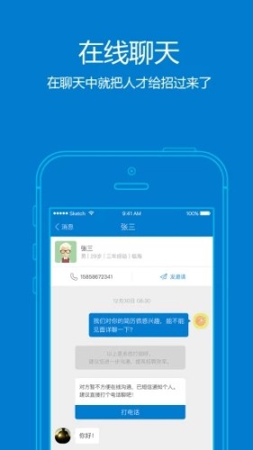 -在线聊天:与求职者在线沟通,对求职者有个初步印象