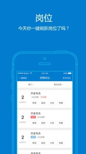 -实时管理岗位:随时发布职位、刷新职位、急招,还能分享职位到朋友圈