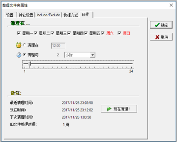 在其他标签页中你还可以设置例外文件、是否包括子文件夹等,在最后的「日程」中则是设定进行清理的时间。