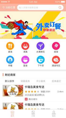 附近美食,无论是早午晚餐、下午茶、宵夜,还是中餐、西餐、家常菜、蛋糕店、小吃、快餐、海鲜、火锅、川菜、烤肉、水果、饮料、甜点等多种美食,动动手指,轻松一点,送餐上门。