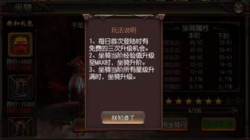 资金足够的玩家可以多买点坐骑丹,还有坐骑礼包,这样坐骑的升级速度也会快的~