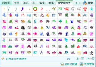 可爱的美少女QQ字体总共包含了887个色彩绚丽形状优美的QQ字体,只要本QQ字体包中包含的文字都可以再聊天过程中一输入普通汉字的方法输入,本QQ字体包采用了EIP的文件格式,只要你安装了QQ2005及以上版本只需要双击就可以进行安装