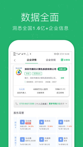 企业查询宝是一款可以快速查询企业和企业老板工商背景信息的强大商业支持工具。覆盖全国1.2亿+企业信息,为用户提供全面有效的企业大数据查询。只要输入需要检索的企业名或人名,就可快速查到企业的工商信息、联系方式、股东高管、股权结构、对外投资、商标专利、法院诉讼、信用状况、关系图谱等。