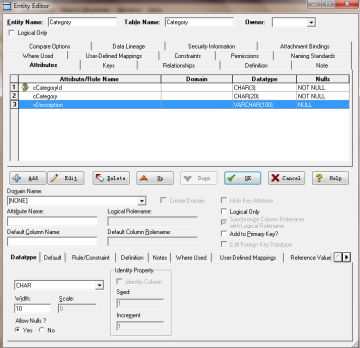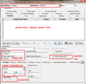 点击Add图标,现在就可以开始添加实体(既是表对象)了,我们需要输入的主要信息有下面几个:
