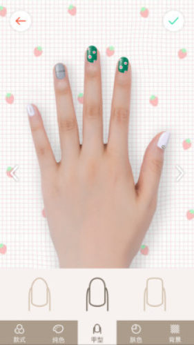 美甲大师app,提供了散式、纯色、甲型、肤色、背景,为用户创建更强大的美甲DIY软件,帮助万千女生选好自己想要的美甲样式。