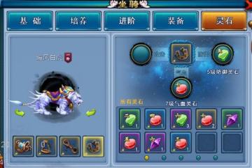 坐骑灵石主要分为攻击、防御和气血三大类,每一大类又细分为1到9个级别。坐骑的4个部位均可镶嵌灵石,镶嵌级别越高的灵石,玩家自身的属性增加的越多,战斗力提升的越高。