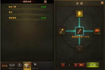 3、道具合成:主要是常用的副本门票以及神秘商店卷轴等的合成,合成概率也是100%。