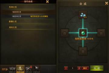 2、宝石合成:宝石分成生命、防御和攻击,合成概率是100%成功。但是宝石的开启以及高等级宝石的合成与精英挑战的通关层数有关。