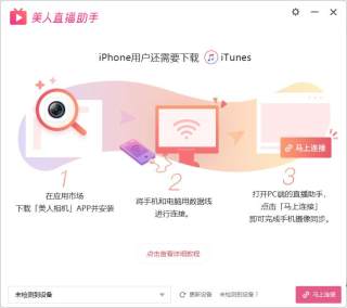 4打开美人直播助手PC端,点击「马上连接」按钮,即可预览视频画面。