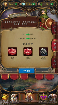 在“升级”界面中,我们可以消耗相应的材料,对主角进行升级,提高主角的战斗力。