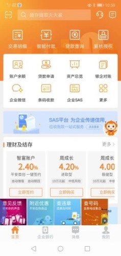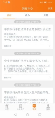平安口袋财务手机版集成开户预约、单位结算卡、移动发薪、移动理财、在线融资、智能支付与移动办公形成的移动综合服务平台。