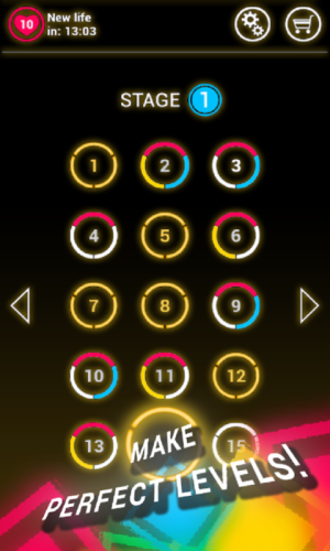 Droooop下载安卓版,黑色背景配上绚丽色彩,为Droooop游戏增加一股酷炫感,Droooop游戏中玩家要将小球落到正确的位置上,获得更多的星星。