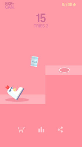 一款画面别致、玩法简单的休闲游戏,持续按着屏幕,让角色把罐子往外踢,罐子正好掉落在白色圈子内即可过关,罐子飞行距离取决于你按着屏幕的时间。