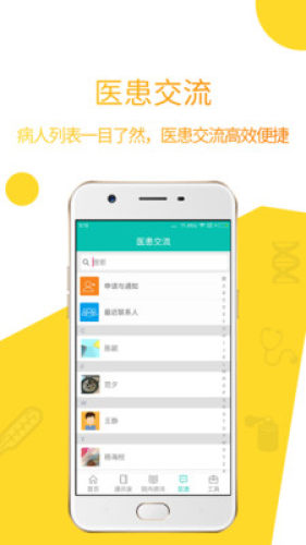 集患者管理、排班查询、日报统计、危急值通知、院内通讯录、院内公告、医患交流等功能于一体,