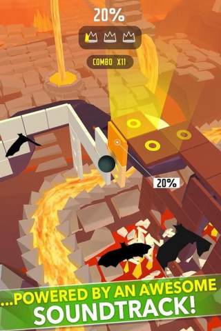 这个作品真的是把Dancing Line跳舞的线和Rolling Sky滚动的天空结合得很棒,优秀的音乐与地图的结合十分紧密,在跳舞的线的基础上加上了对于转向位置的点击等级判定,更是让人感受到浓浓的传统音游味道。精美的画风和音乐,熟悉的一指禅玩法,比舞线跟更友好,大幅度消减难度,场景不单一。