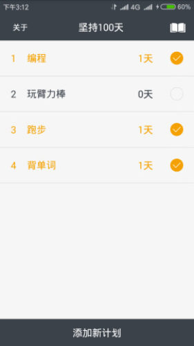 添加新计划,如编程、玩臂力棒、跑步、背单词等等