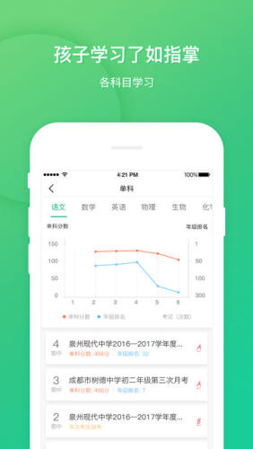 成绩报告:深层地数据挖掘,剖析孩子知识点掌握情况,进退步趋势分析,帮助孩子考后针对性安排提优补差。