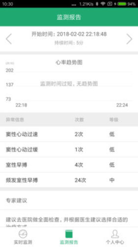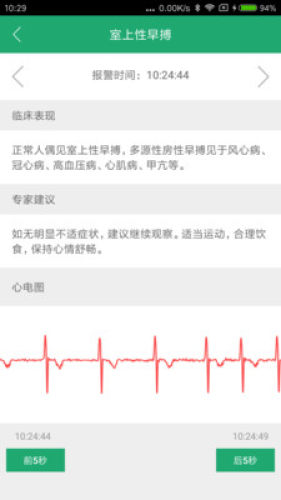 可以监测心率的APP,配合吉天可以监测心率的衣服,这种衣服的面料里含有很多特殊的感受器,可以监测心率,并把相关数据传导给健康云杉APP,用户可以实时的查看到自己的心率情况,监测预警,进而很好的把控健康状况。