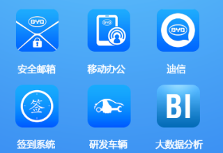 工作流程,新闻资讯,通知公告,员工自助,企业文化,学习平台,MES报表,比亚迪人报