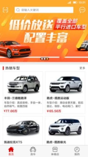 最全的平车进口车型、车款,丰富的亮点配置。收藏心仪的车型、车款,库存实时更新,更有预约和订车功能,预约试驾,体验汽车性能。订车功能可以预订心仪,到店体验快捷提车服务。