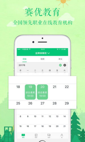 赛优课堂是一款在线教育服务平台,提供教师资格证、经济师职称、导游资格证、园长证等专业的培训课程,名师直播在线指导,感兴趣的朋友,赶快来下载吧!