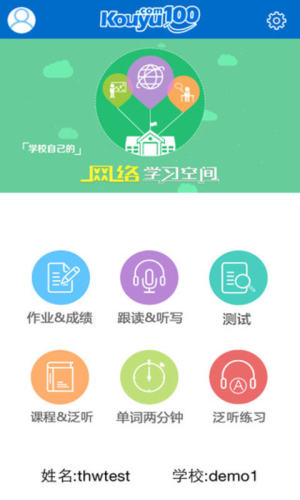 基于云计算技术,口语100为每个学校建设自己的虚拟校园,校园的虚拟教室(语音教室,语言实验室),教室里的虚拟教练。