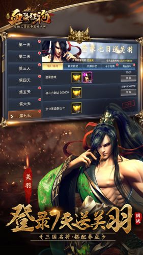血染征袍果盘版是一款创新的另类三国题材手游,现在推出专属福利,登录7天就送武将关羽,还有更多你熟悉的三国名将,不断搭配养成中,更加丰富的玩法,为你开启独特地图对决。