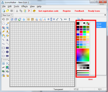 IconoMaker(图标制作编辑器)是一款功能强大而且非常容易使用的图标、小图像编辑制作工具,它可以帮助你你编辑或建立图标,多种尺寸,同时允许你自定义尺寸。