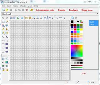 IconoMaker可让你编辑或创建图标档,支持16*16、32*32、48*48等尺寸。输入及输出之文件格式可为*.ICO, *.PNG, *.XPM, *.XBM以及*.ICPR等格式。本软件虽为免费软件,但有十五天使用限制。免费取得注册码之后,即可继续使用。
