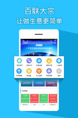 百联大宗是专为大宗商品行业企业和商务人士打造的移动客户端,为用户提供便捷的商务服务,让做生意更简单,专业的大宗人脉圈,感兴趣的朋友,赶快来下载体验吧!