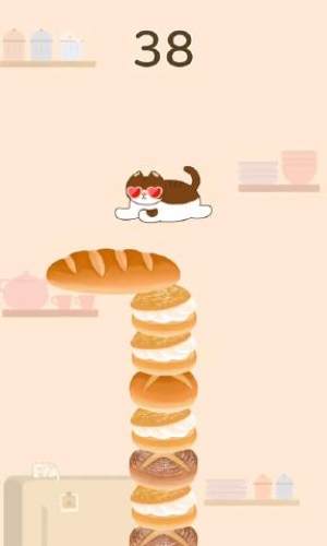 类似于叠叠乐的游戏,主角是可爱的猫咪,你得让他在不断往上的面包上跳跃,并且防止被突然出现的面包打中。