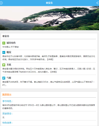 泰安旅游app是一个针对于泰安地区,打造移动互联网上的旅游资讯平台,可提供景点门票,景点景色查看、机票,酒店美食预订,旅游路线查询,在线地图导航的专业旅游行业的APP平台。
