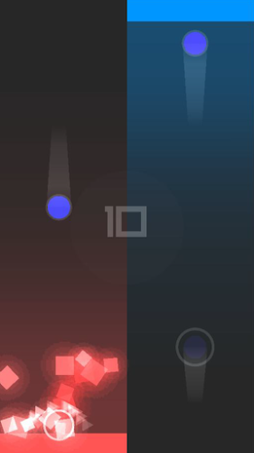 这款游戏的难度是非常高的,我们得操纵两个方块快速的变换颜色,如果其中一个没有变换过来,那么这场游戏已经结束了,非常考验反应能力,喜欢挑战的朋友你还在等什么?快快来下载吧!