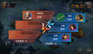 战斗开始时双方根据主将的速度数值,依次每个单元格发起攻击;影响战斗胜负的因素有双方主将属性、兵种搭配、阵型、技能等;所有兵力全部战死的一方为战斗失败。