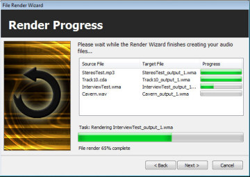 Voice再次呈现WAV、OGG、WMA格式。要把播放列表中的一个或多个项目呈现到这些媒体类型之一,请单击文件>渲染音频文件...菜单。这把弹出一个文件渲染向导对话框。该向导把允许您选择一个或多个播放列表项目,音频格式与把创建这些文件的文件夹