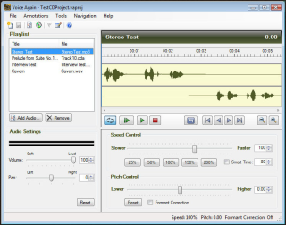 Voice Again是一款简单易用的声音重复播放工具,该软件可以减慢或加快录音速度,从而更容易转录采访或录音,它还允许记录的文本注释方便地导航到记录的不同部分,用户可以将各种音频文件导入到项目中,软件提供了先进的速度控制工具,让用户在不改变音调的情况下将录制速度降低10次。