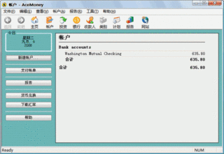 AceMoney 支援支票、存款、信用卡、贷款、借方帐户。您甚至可以建立属于您自己的帐户型态,如: 给孩子们的零用钱!