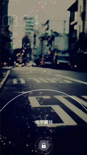 实现简单的锁屏功能,上滑打开手机下拉有粒子闪烁效果