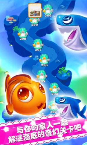 挥指间,静看萌萌的小鱼消翻天。凑够三个相同的小鱼即可消除,越多附加效果越厉害