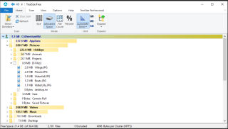 TreeSize Free是一款功能强大的硬盘空间管理软件。TreeSize能够为你选择的几个文件夹和驱动器显示其大小,已分配空间和被浪费空间的大小,文件的数目,文件拥有者,3D条形和饼状统计图,最后访问的日期,NTFS压缩率及更多其它信息。