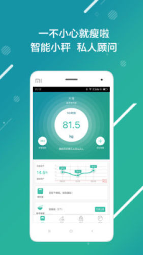 蓝牙连接瘦啦智能体脂秤,BMI等8项指数一览无余;完善的家庭管理云系统,记录每天的身体变化,让您更了解自己和家人的健康状况!