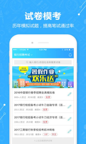 提供银行、农信社、银行从业、证券从业、基金从业、电网和烟草招聘考试习题和模考卷