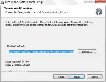 3、选择video cutter expert软件安装路径,点击install按钮,等待软件安装完成即可