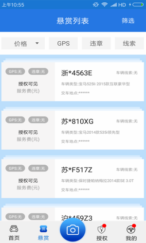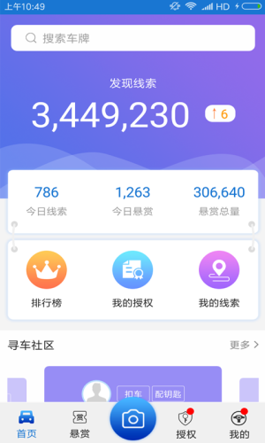积分赠送:发现可疑线索获得系统积分,积分可用来查询更多可疑车辆信息