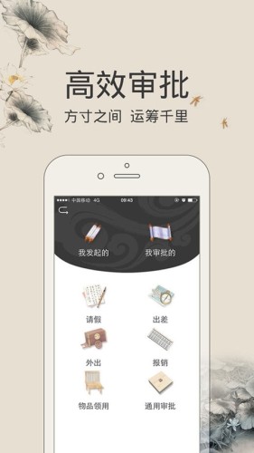 -审批:解决企业日常办公审批需求,如请假,出差,外出,报销,物品领用,通用审批等,让工作更高效;