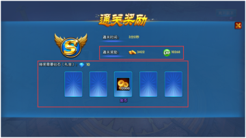 通关后除了得到金币经验外,有一次抽奖机会得到额外的金币和其它道具。